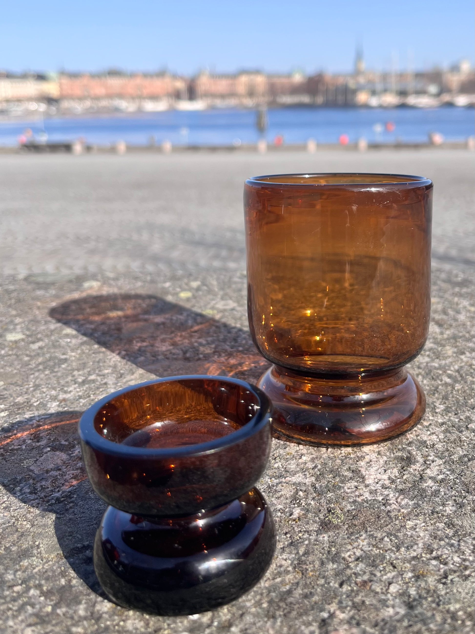 Äggkopp i munblåst glas formgiven av Linnéa Hedenus.
