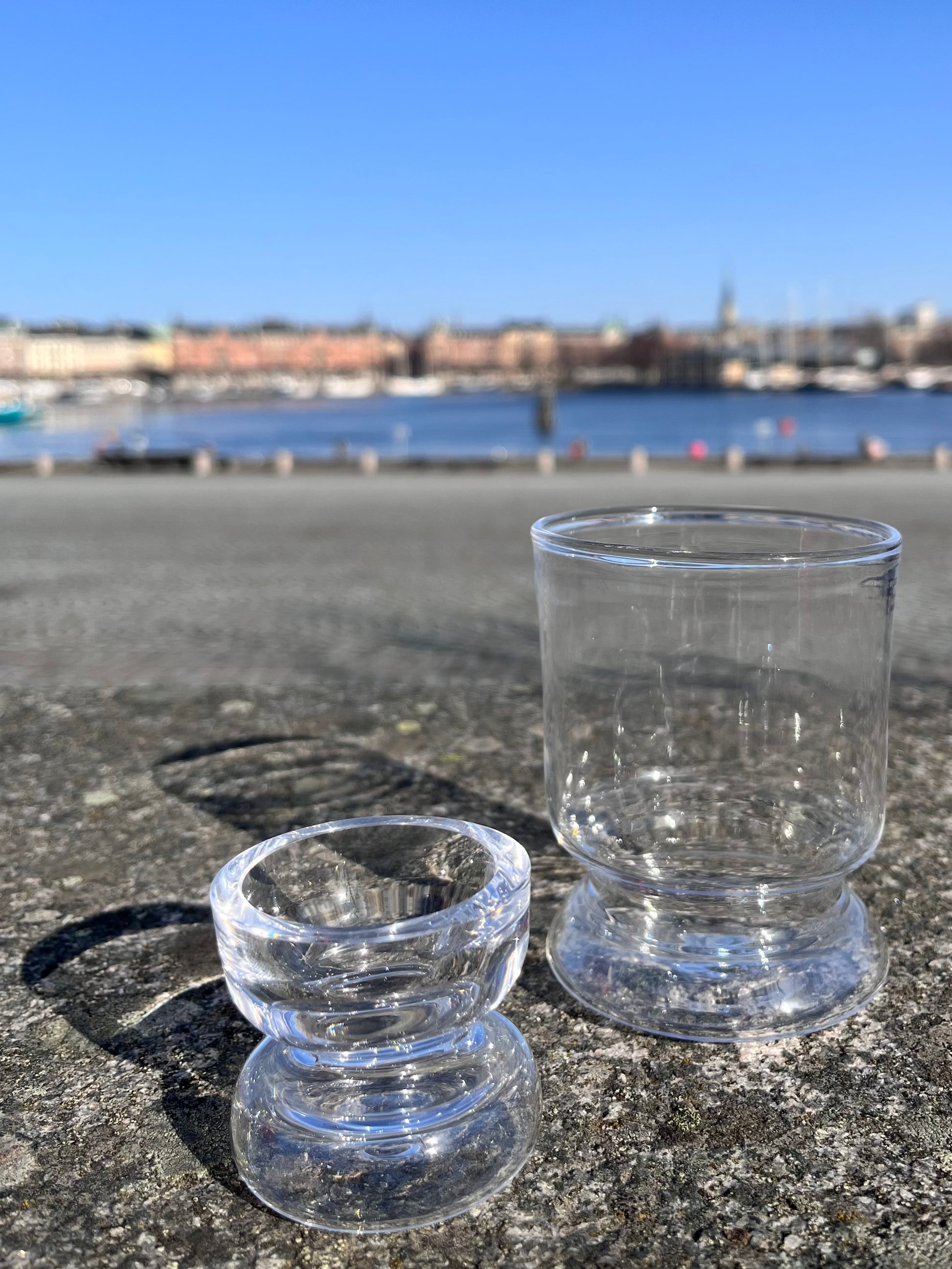 Dricksglas i munblåst glas av formgivaren Linnéa Hedenus.