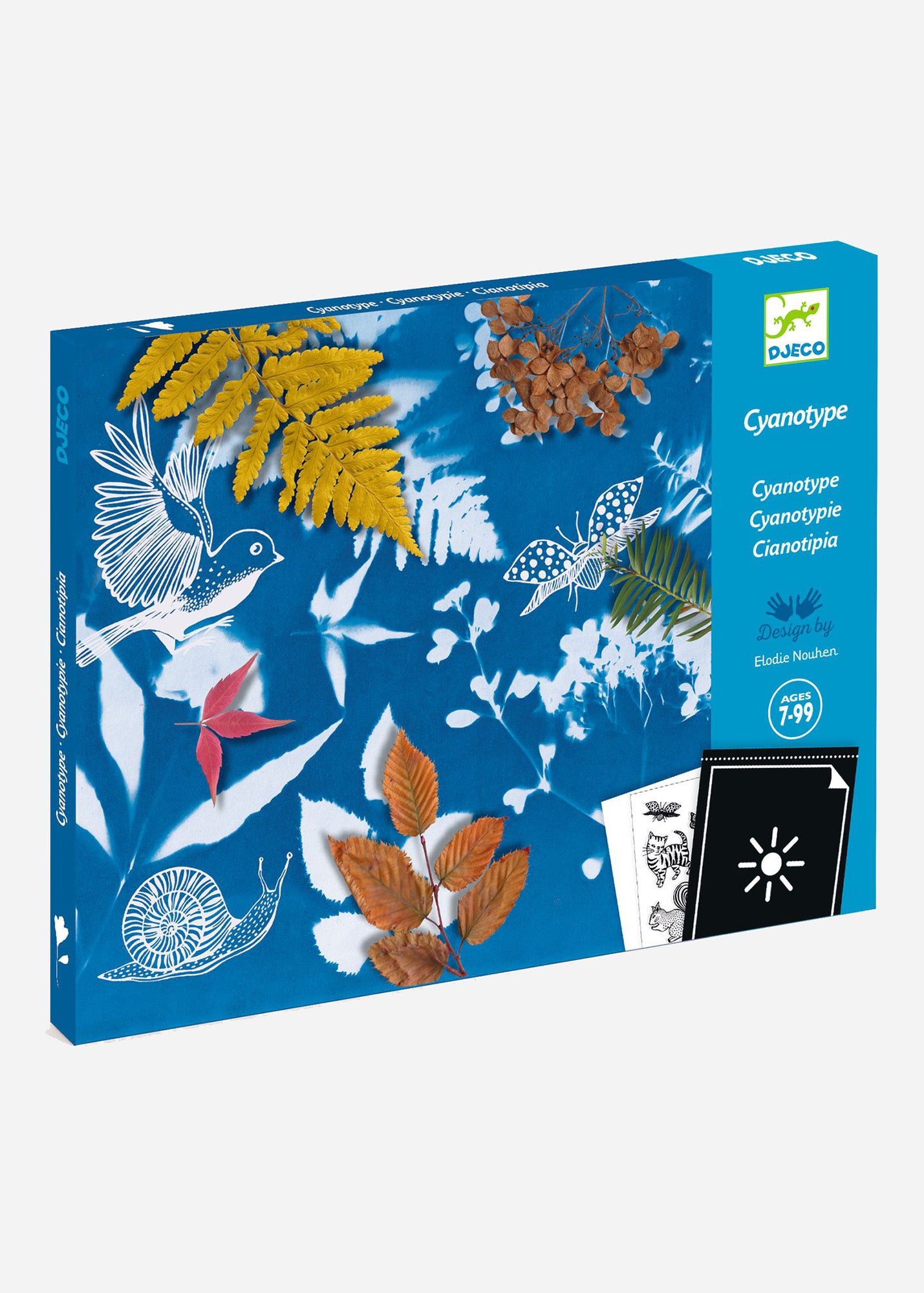 En magisk och inspirerande aktivitet baserad på en fotografisk teknik: cyanotypi. Genom att använda opaka mönster och valfria naturliga element, som blad och blommor, kan man skapa unika scener på det ljuskänsliga pappret. I detta set ingår också flera olika naturinspirerade illustrationer på genomskinligt papper som kan hjälpa dig att skapa åtta stämningsfulla, poetiska konstverk.